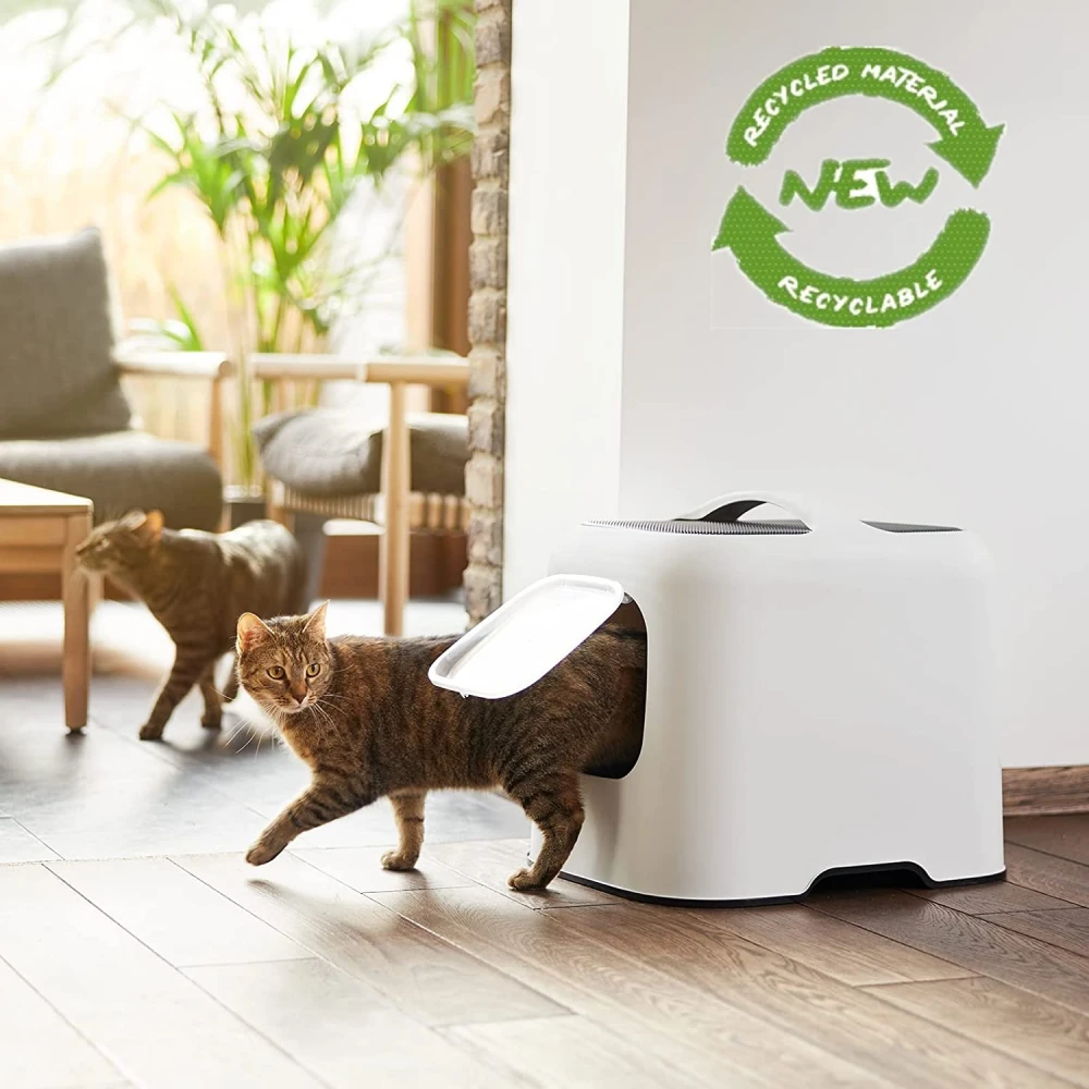 Επιτέλους μια λεκάνη γάτας που δεν χρειάζεται να την κρύβετε από την κοινή θέα. Όχι, μόνο η εμφάνιση αυτού του κουτιού απορριμμάτων είναι εξαιρετική, αλλά και η υγιεινή δεν παραμελείται. Χάρη στο φίλτρο άνθρακα δεν υπάρχουν δυσάρεστες οσμές. Το πορτάκι κλείνει γρήγορα και με ασφάλεια με μαγνήτη, έτσι ώστε να μην διαφεύγει τίποτα δυσάρεστο. Το καπάκι αφαιρείται εύκολα με το ένα χέρι για καθάρισμα.