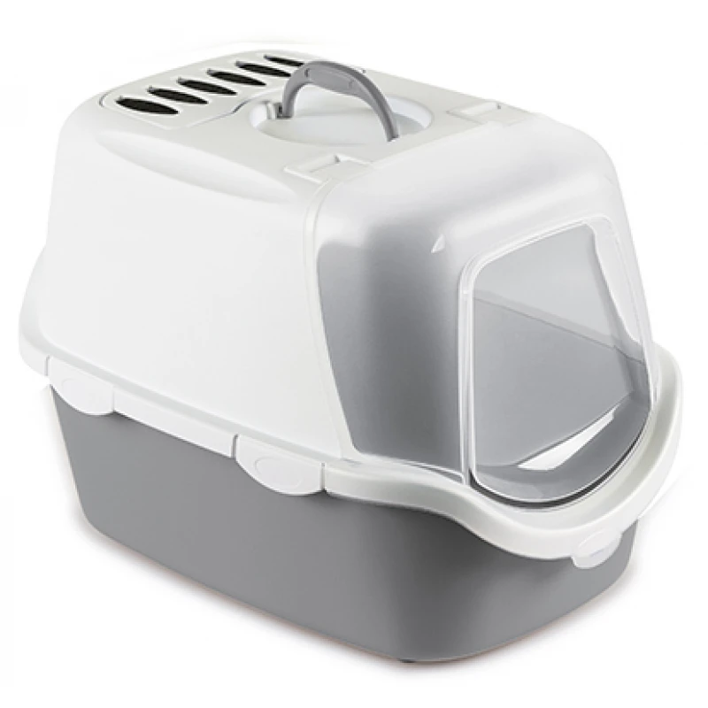 Η Cathy Easy Clean είναι μια τουαλέτα για γάτες με καπάκι πλήρως εξοπλισμένη για να ανταποκρίνεται καλύτερα στις ανάγκες τους. Είναι πολύ ευρύχωρη και ταυτόχρονα άνετη για το κατοικίδιο ζώο ώστε να νιώθει ασφαλές. Διαθέτει πόρτα με πτερύγια για ευκολότερη είσοδο και έξοδο, δεύτερο πρακτικό άνοιγμα για ταχύτερο και ευκολότερο καθαρισμό, λαβή μεταφοράς και φίλτρο άνθρακα για να απαλλαγείτε από κακές οσμές.