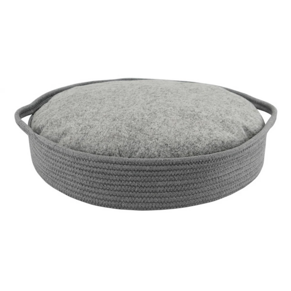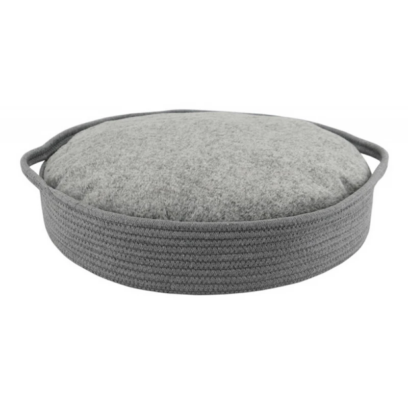Στρογγυλό κρεβατάκι για σκύλους και γάτες με πλεκτό πλαίσιο που θυμίζει καλαθάκι.