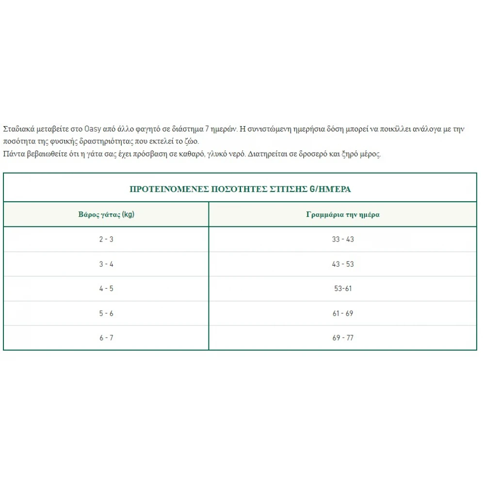 Oasy Cat Sterilised Adult Turkey 1,5kg. Πλήρης τροφή με γαλοπούλα για στειρωμένες ενήλικες γάτες.Φροντίστε τη στειρωμένη γάτα σας. Με περισσότερα από 70% ζωικά συστατικά και συγκεκριμένα οφέλη για την υποστήριξη ενός υγιούς ουροποιητικού συστήματος και ελέγχου του βάρους, θα προάγετε την ευεξία και τη ζωτικότητά της γάτας σας κάθε μέρα.