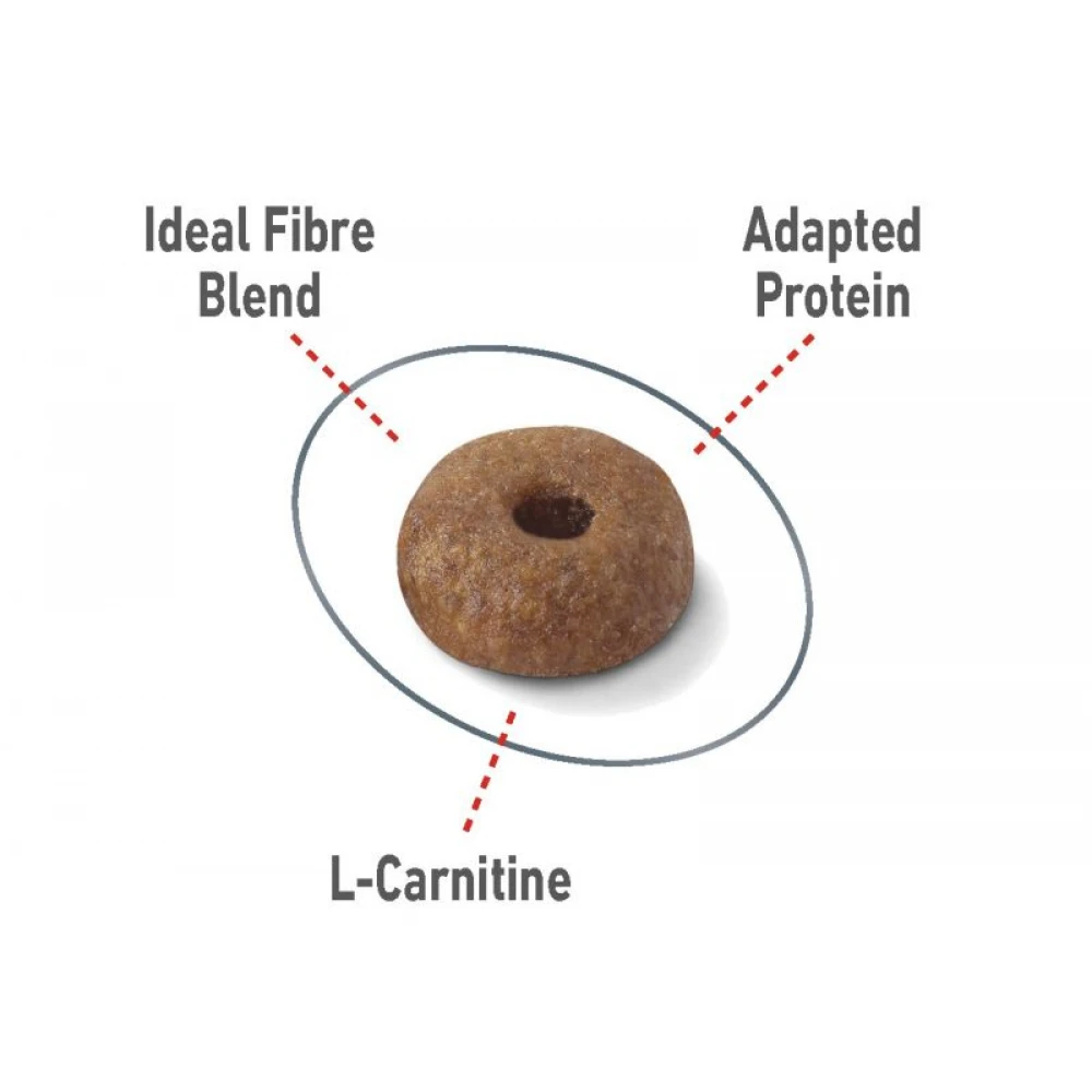 Ξηρά τροφή για υπέρβαρες γάτες, με χαμηλές θερμίδες. Με φυτικές ίνες, υψηλό ενεργειακό περιεχόμενο για διατήρηση της μυϊκής μάζας, L-καρνιτίνη για ενεργοποίηση του μεταβολισμού, καλό αίσθημα κορεσμού.