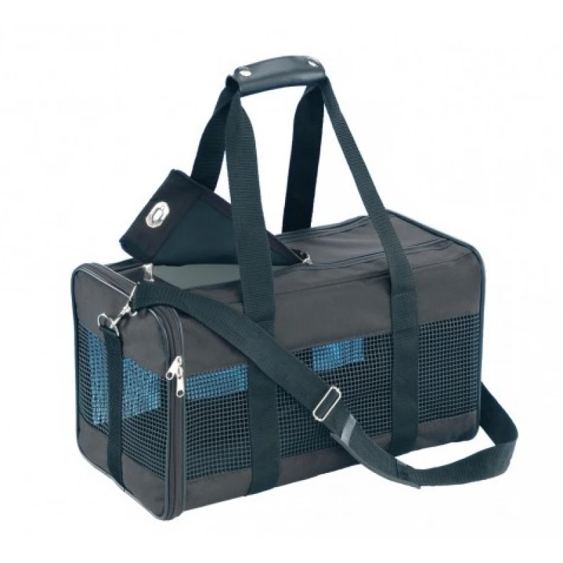 Είτε ταξιδεύετε είτε πηγαίνετε στον κτηνίατρο – κάντε τη μεταφορά του μικρού σκύλου ή της γάτας σας όσο το δυνατόν πιο εύκολη και χωρίς άγχος. Αυτή η τσάντα μεταφοράς είναι κατασκευασμένη από στιβαρό, ανθεκτικό στο σκίσιμο νάιλον και επομένως είναι εύκολο να καθαριστεί. Μερικά ζώα προτιμούν να τοποθετούνται σε ένα φορέα από την κορυφή, άλλα από το πλάι – αυτός ο φορέας επιτρέπει και τα δύο. Είναι επίσης εξοπλισμένο με πλαϊνή τσέπη, λαβές μεταφοράς και ιμάντα ώμου. Η μόνιμη παροχή φρέσκου αέρα και η καλή κυκλοφορία του αέρα εξασφαλίζονται με ένθετα πλέγματος σε όλες τις πλευρές.