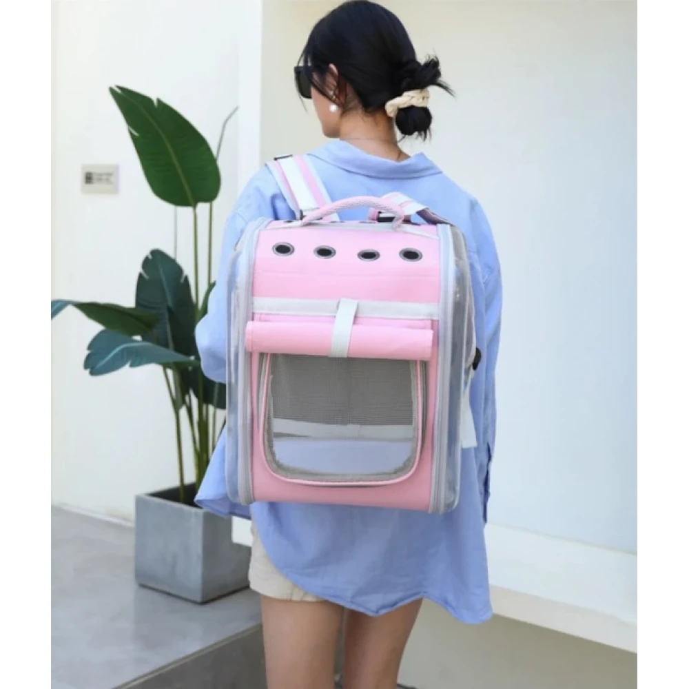 - Διαφανές πανί χρησιμοποιείται στην αριστερή και δεξιά πλευρά και διάτρητο δίχτυ στο μπροστινό μέρος, έτσι ώστε το κατοικίδιο ζώο σας να έχει μεγάλη θέα 270 μοιρών και να αισθάνεται τη φύση μέσα το σακίδιο.
