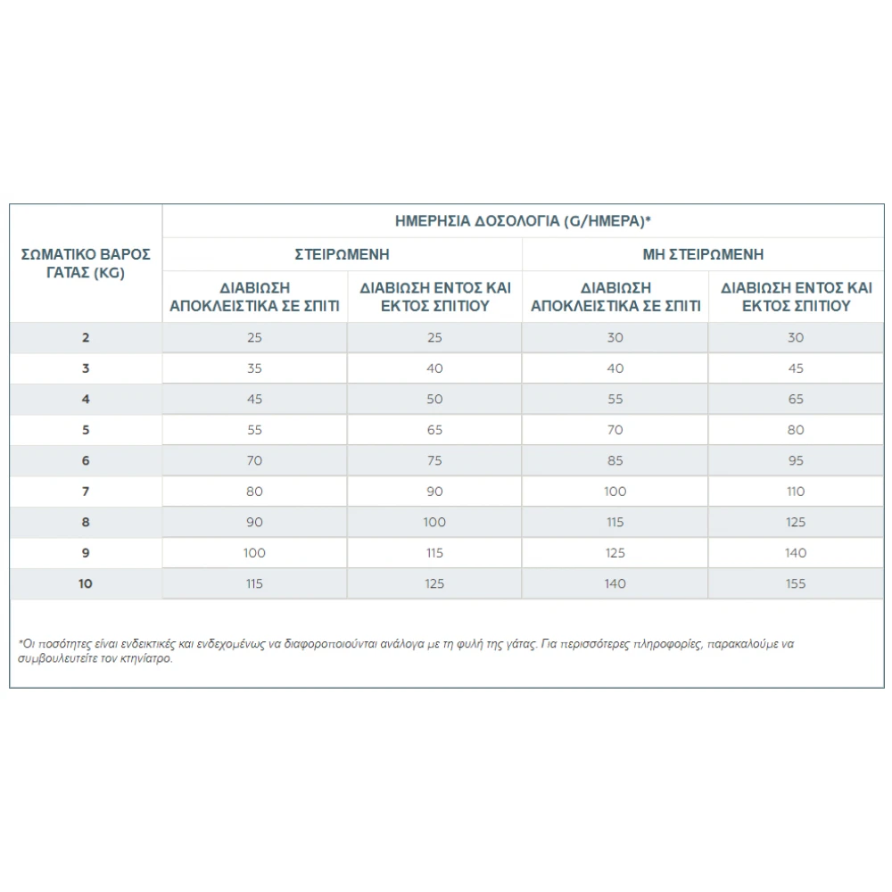- Για ενήλικες γάτες, στειρωμένες ή μη στειρωμένες, ηλικίας μεγαλύτερης των 12 μηνών